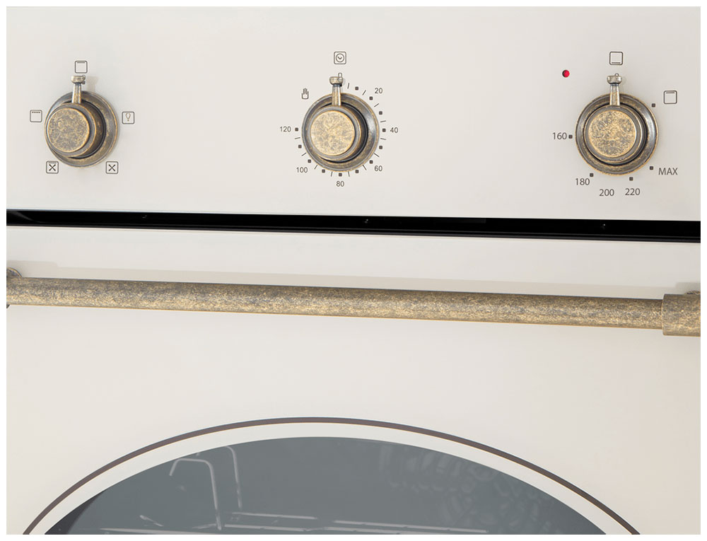 Описаниешкаф духовой газовый, 60 см, слоновая кость/бронза