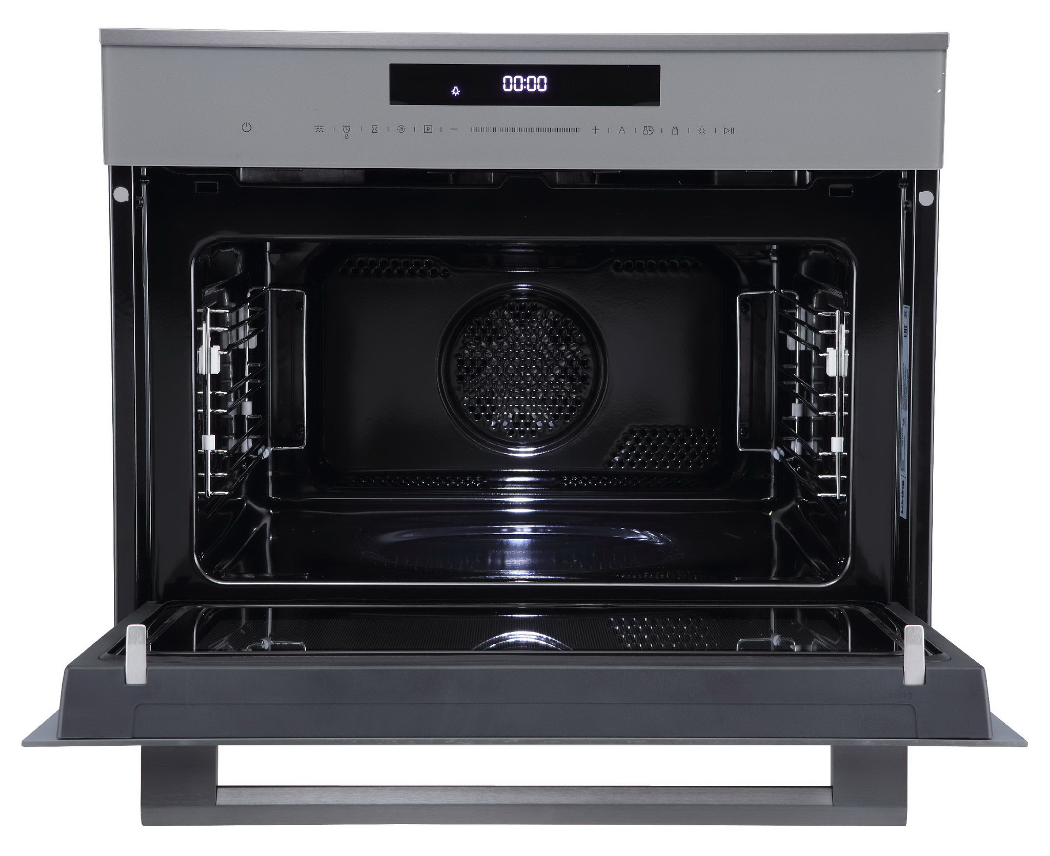 Описаниешкаф духовой электрический компактный с функцией СВЧ, 60 см, серое стекло + черная нержавеющая сталь