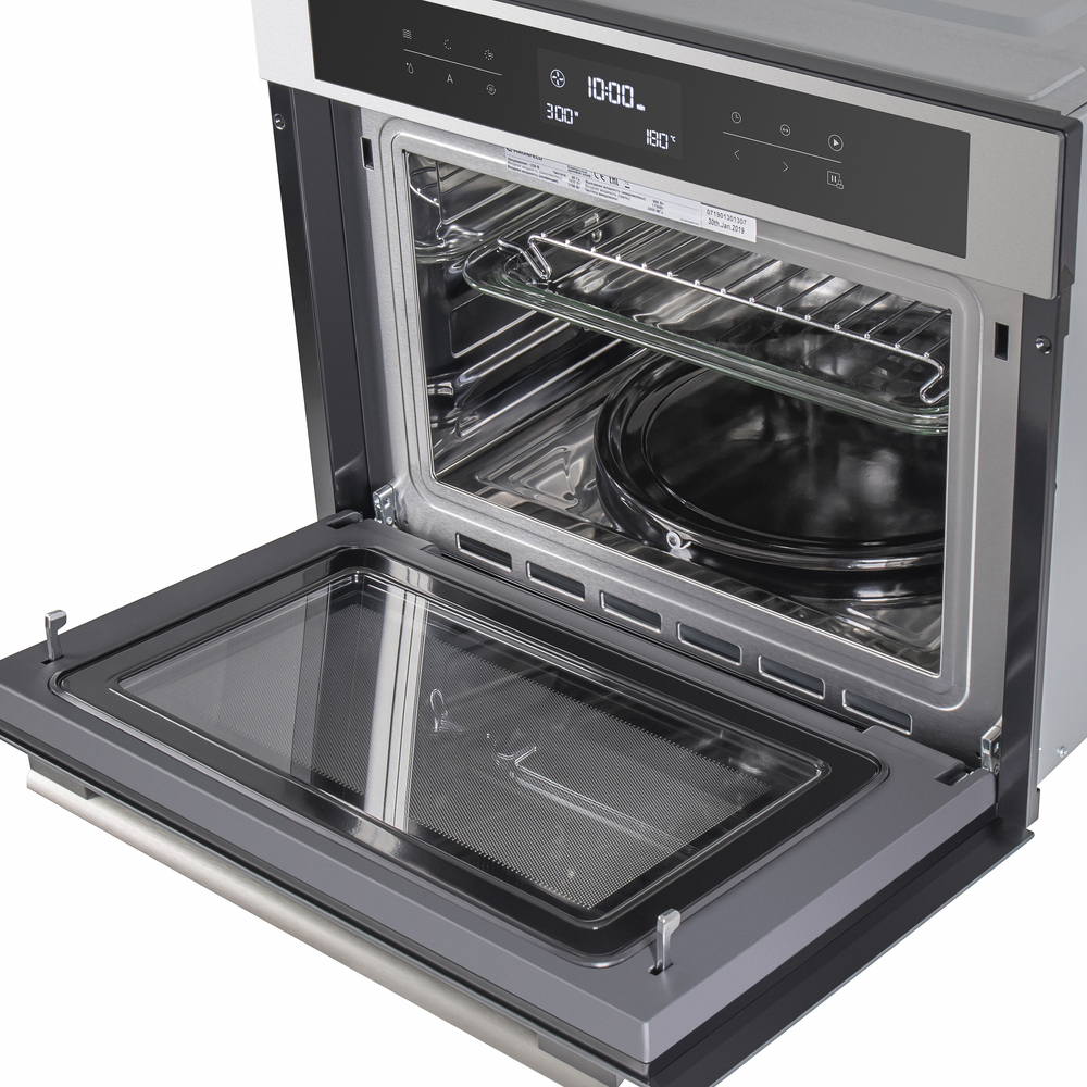 Описаниешкаф духовой электрический компактный с функцией СВЧ, 60 см, нержавеющая сталь/черное стекло