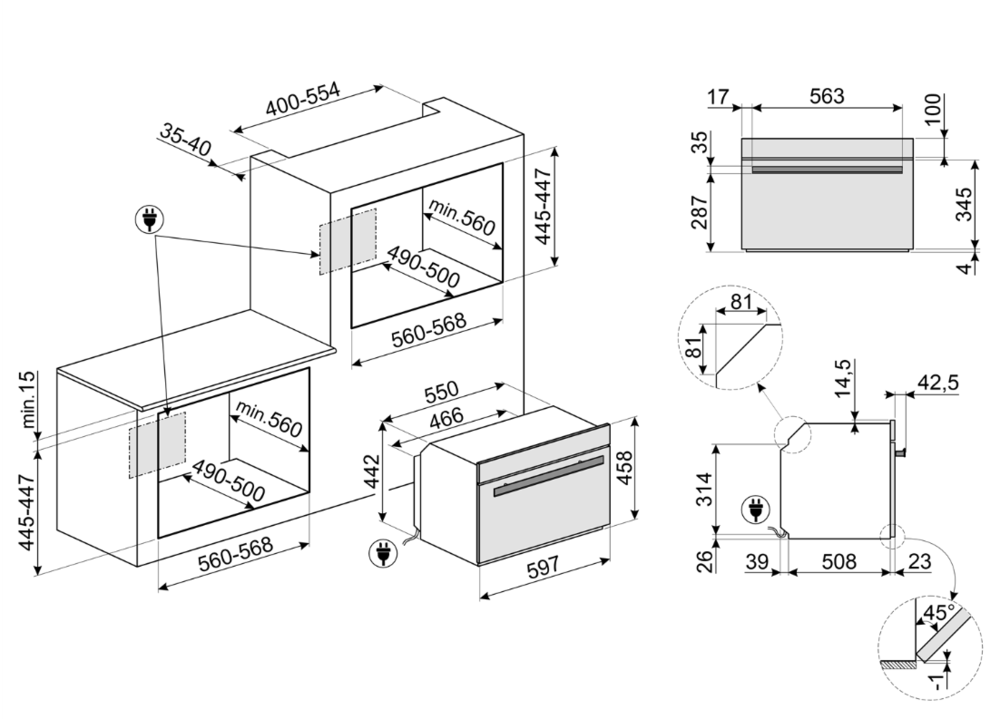 Размер (Высота) 45,4 см Размер (Глубина) 54,8 см Размер (Ширина) 59,7 см Цвет черный Класс энергопотребления класс A++ Ширина прибора 60 см Высота прибора 45 см Дисплей есть Конвекция есть Объём духовки 41 л Очистка духовки паром Переключатели сенсорные Режимов работы 20 Количество стекол дверцы духовки три Тип духовки электрическая Установка независимая Телескопические направляющие нет Управление электронное Таймер есть Функции с функцией пароварки Термозонд (Термощуп) есть Защита от детей есть Мощность подключения, Вт 3000 Плавное закрытие дверцы духовки есть Фронтальная поверхность закалённое стекло Фурнитура черная Гарантийный срок (месяцы) 24 Страна производитель Италия Ссылка на сайт производителя https://www.smeg.com/ru/%D0%BF%D1%80%D0%BE%D0%B4%D1%83%D0%BA%D1%82%D1%8B/SO4604S4PNR Мощность микроволн нет Размер в упаковке (Высота) 53,5 см Размер в упаковке (Ширина) 63,5 см Размер в упаковке (Глубина) 68 см Вес прибора 35,3 кг Размер (Ширина), см 59,7 Размер (Высота), см (Общие) 45,4 Размер (Глубина), см 54,8 - Отзывы
