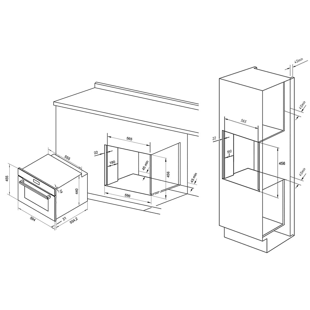Описаниешкаф духовой электрический компактный, 60 см, черное стекло