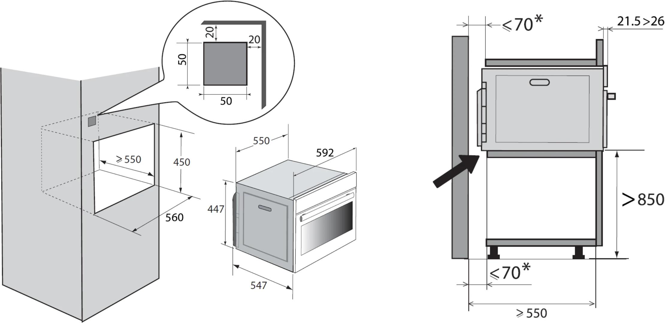 Описаниешкаф духовой электрический компактный, 60 см, черный
