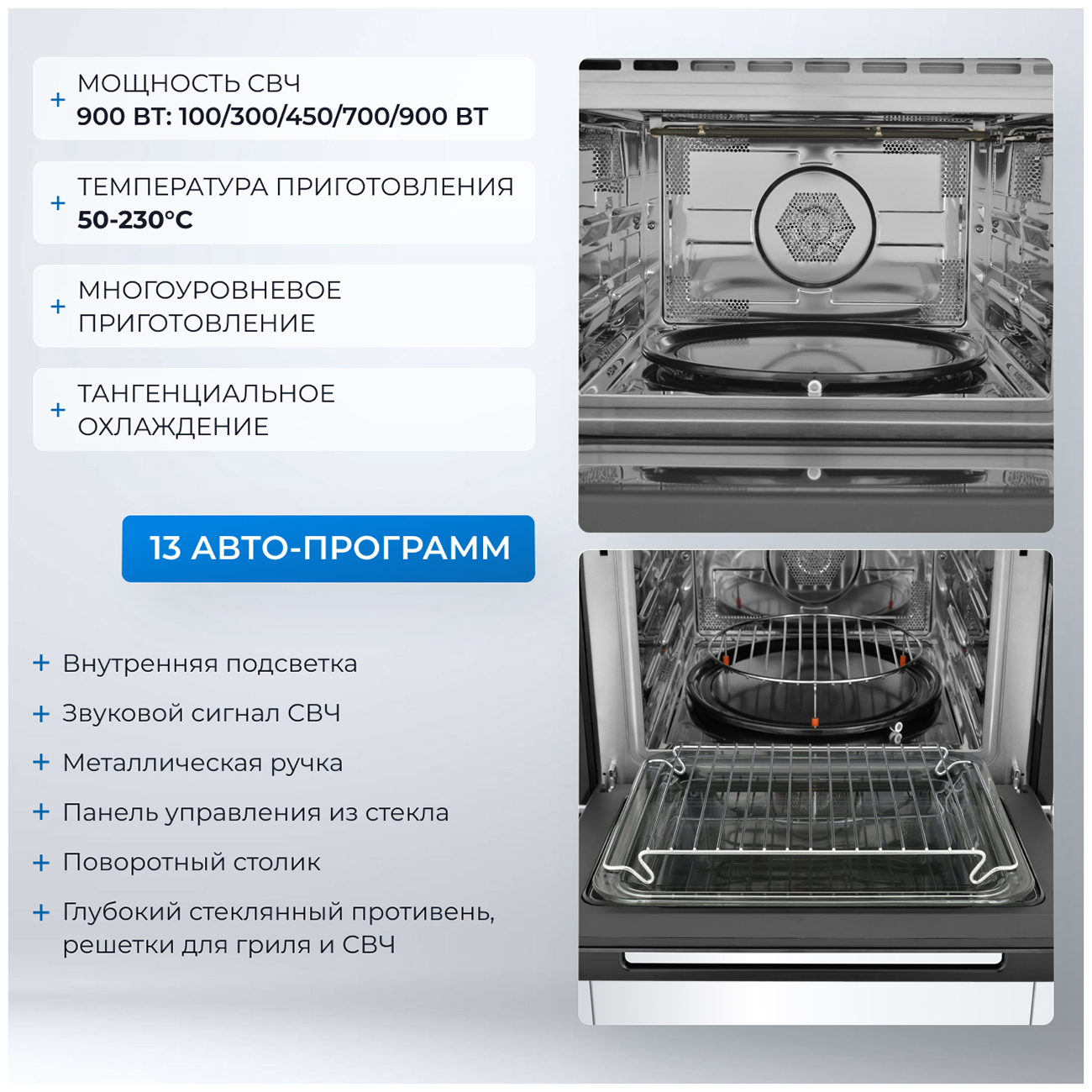 Размер (Высота) 45,4 см Размер (Глубина) 56,8 см Размер (Ширина) 59,5 см Цвет стальной Ширина прибора 60 см Высота прибора 45 см Дисплей есть, LED-дисплей Конвекция есть Объём духовки 44 л Переключатели сенсорные Режимов работы 11 Количество стекол дверцы духовки три Тип духовки электрическая Установка независимая Управление электронное Таймер есть Защита от детей есть Мощность подключения, Вт 3350 Гарантийный срок (месяцы) 24 Страна производитель Китай Мощность микроволн 900 Вт Вес прибора 36 кг Размер (Ширина), см 59,5 Размер (Высота), см (Общие) 45,4 Размер (Глубина), см 56,8 - Отзывы
