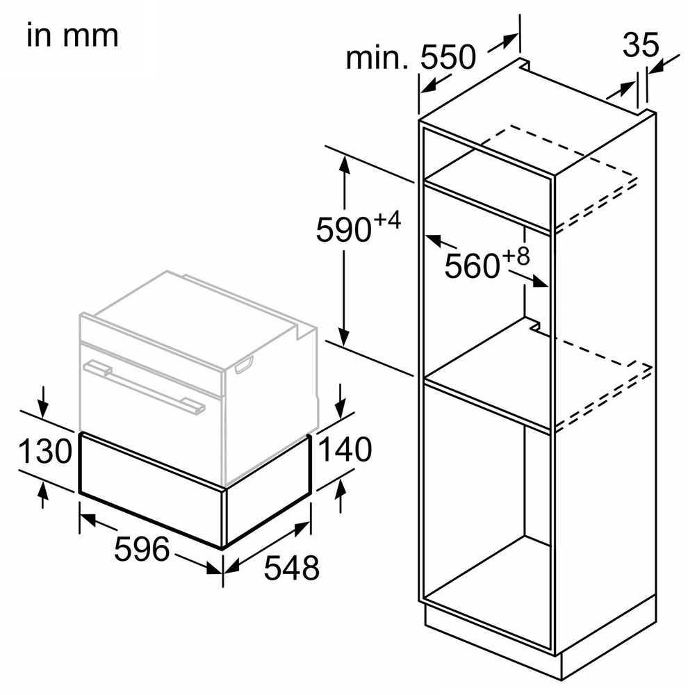 Ящик для подогрева Flex Design 14 см, профили не входят в комплект, приобретаются в качестве обязательных аксессуаров в 4 цветах по вашему выбору, открывание Push-Pull, объем 20 л, вместимость до 25 кг, выдвижная тележка на телескопических направляющих, 4 режима нагрева, 6-ступенчатый контроль температуры, Home Connect, выдвижной ящик, который можно использовать в сочетании с кофемашинойХарактеристики