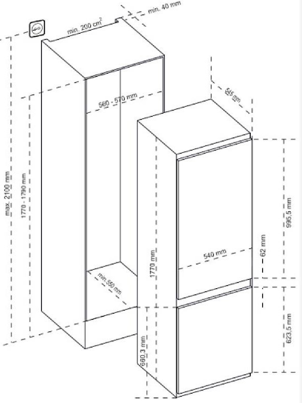 Описаниехолодильник-морозильник встраиваемый, 243 л, класс энергопотребления А+, No Frost, 54х54,5x177 cм, белый