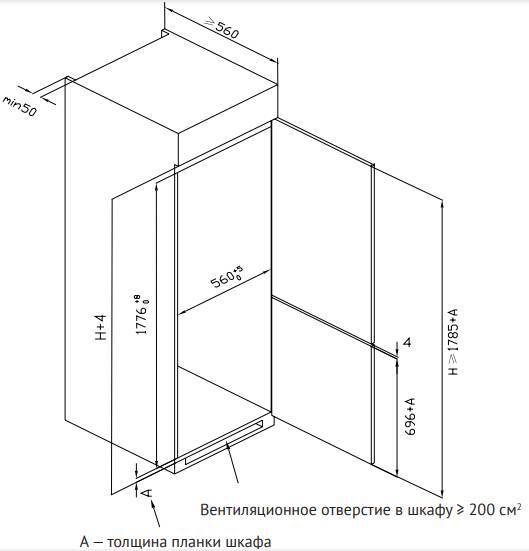 Описаниехолодильник-морозильник встраиваемый, 241 л, класс энергопотребления А+, No Frost, 54х54,5х177 см