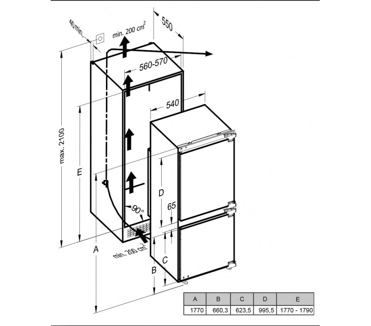 Описаниехолодильник-морозильник встраиваемый, 243 л, класс энергопотребления А+, ручная система размораживания, 54х54,5х177 см