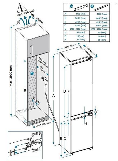 Описаниехолодильник-морозильник встраиваемый, 216 л, класс энергопотребления А+, ручная система размораживания, 54х54,5х177 см