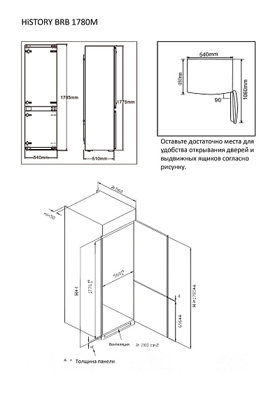 HISTORY BRB 1780M Двухкамерный холодильник встраиваемый