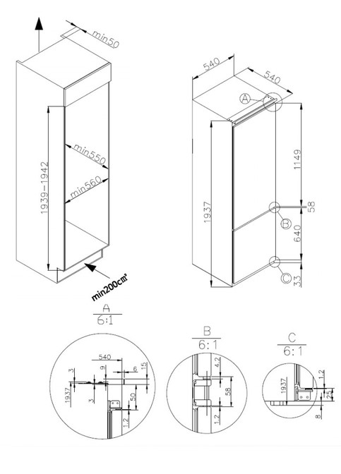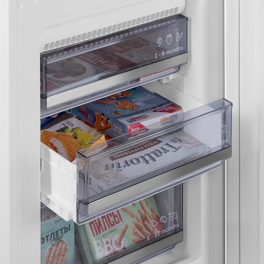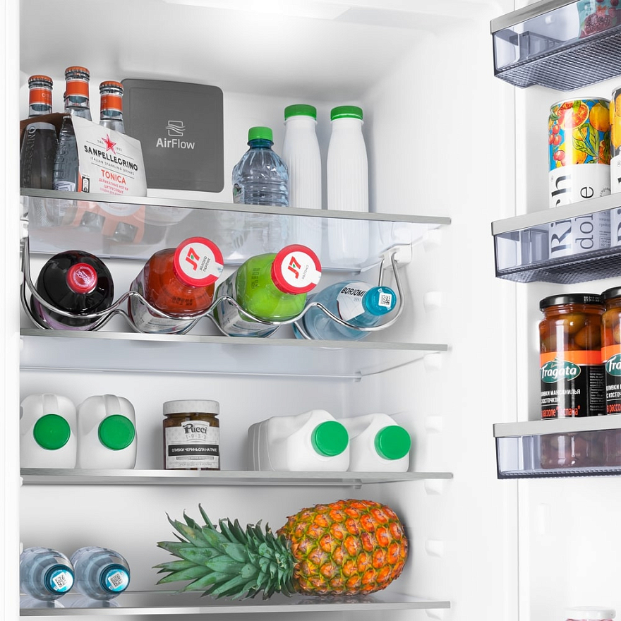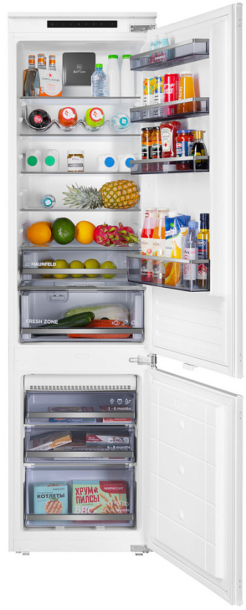Описаниехолодильник-морозильник встраиваемый, 281 л, класс энергопотребления А+, NoFrost, 54x54x193,7 см