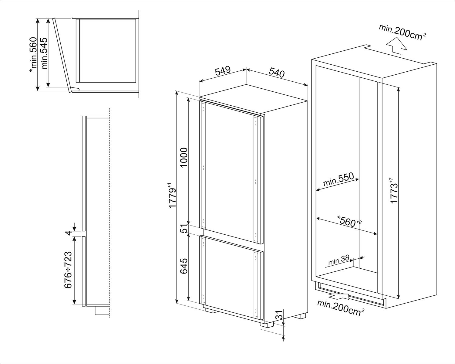 Описаниехолодильник-морозильник встраиваемый, 248 л, класс энергопотребления D, NoFrost, 54.6х54.9х177.2 см