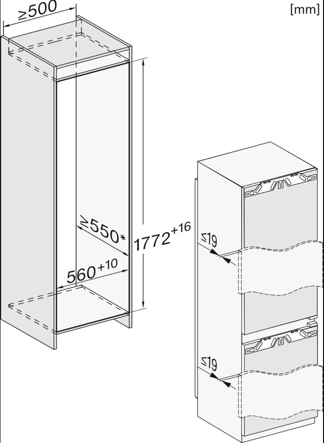 Описаниехолодильник-морозильник встраиваемый, 244 л, класс энергопотребления A++, No Frost, 56х55х177,2 см