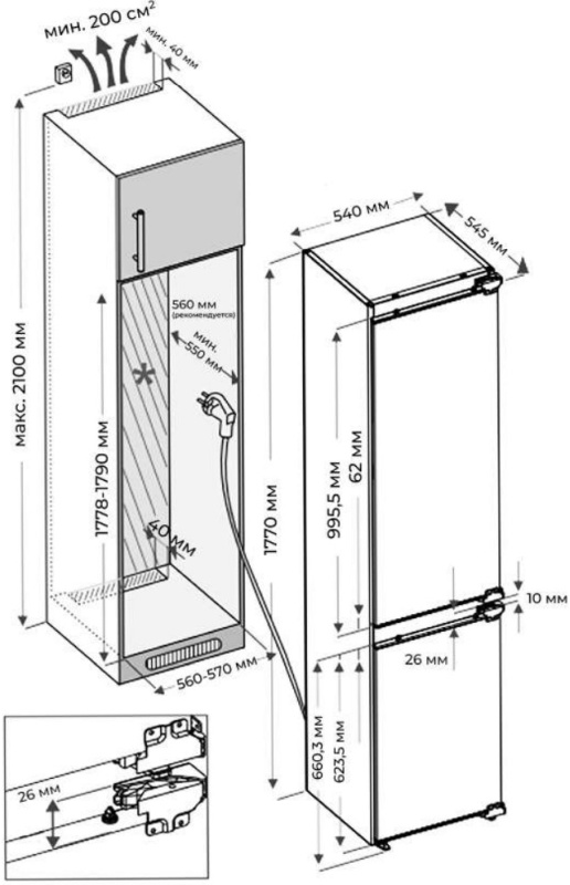 ОписаниеДвухкамерный холодильник встраиваемый