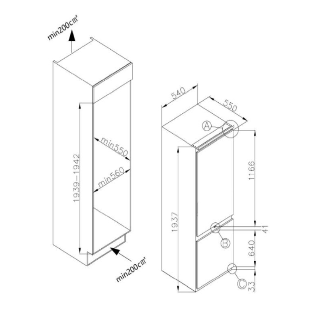 Zigmund & Shtain BR 19 X Двухкамерный холодильник встраиваемый