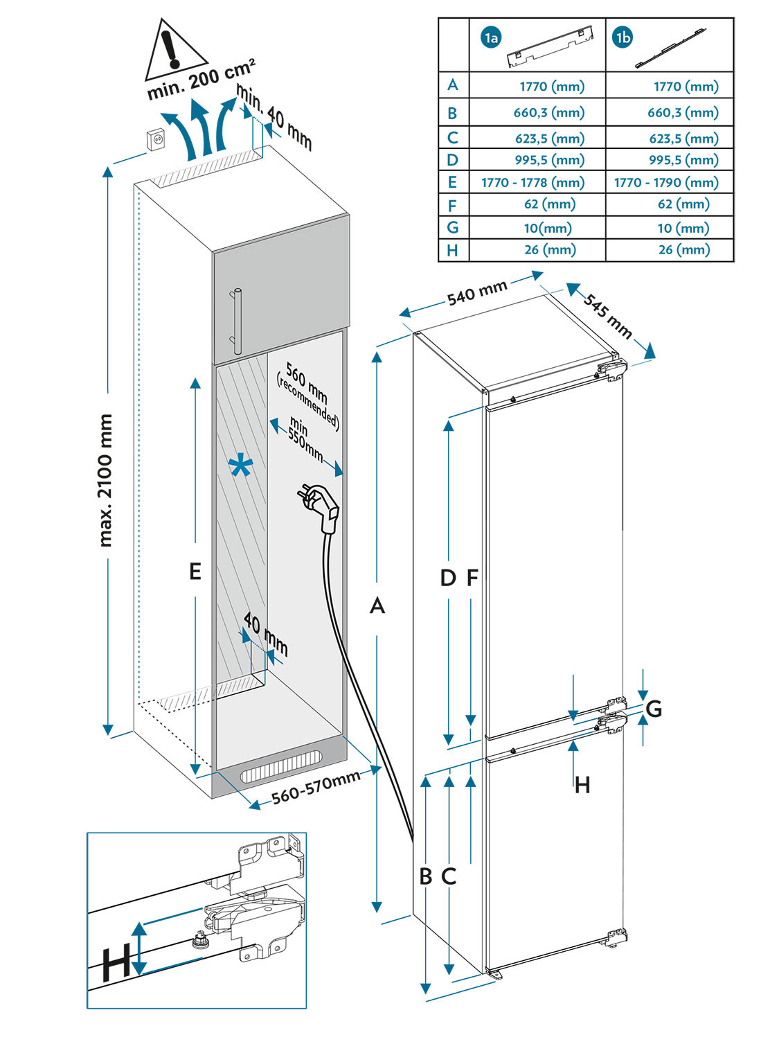 Описаниехолодильник-морозильник встраиваемый, 233 л, класс энергопотребления А++, No Frost, 54х54,5х177 см
