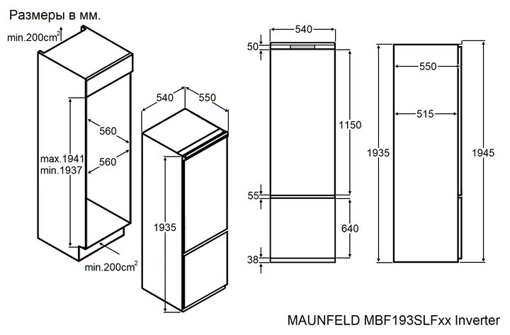 Maunfeld MBF193SLFWGR Inverter Двухкамерный холодильник встраиваемый