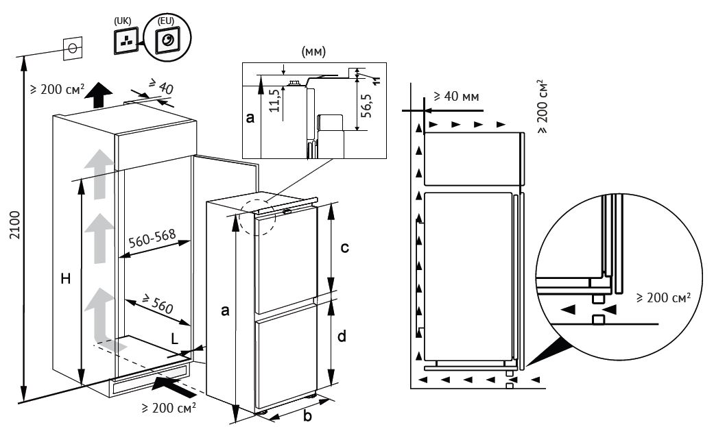 Описаниехолодильник-морозильник встраиваемый, 252 л, класс энергопотребления А+, No Frost, 54х54х175,5 см