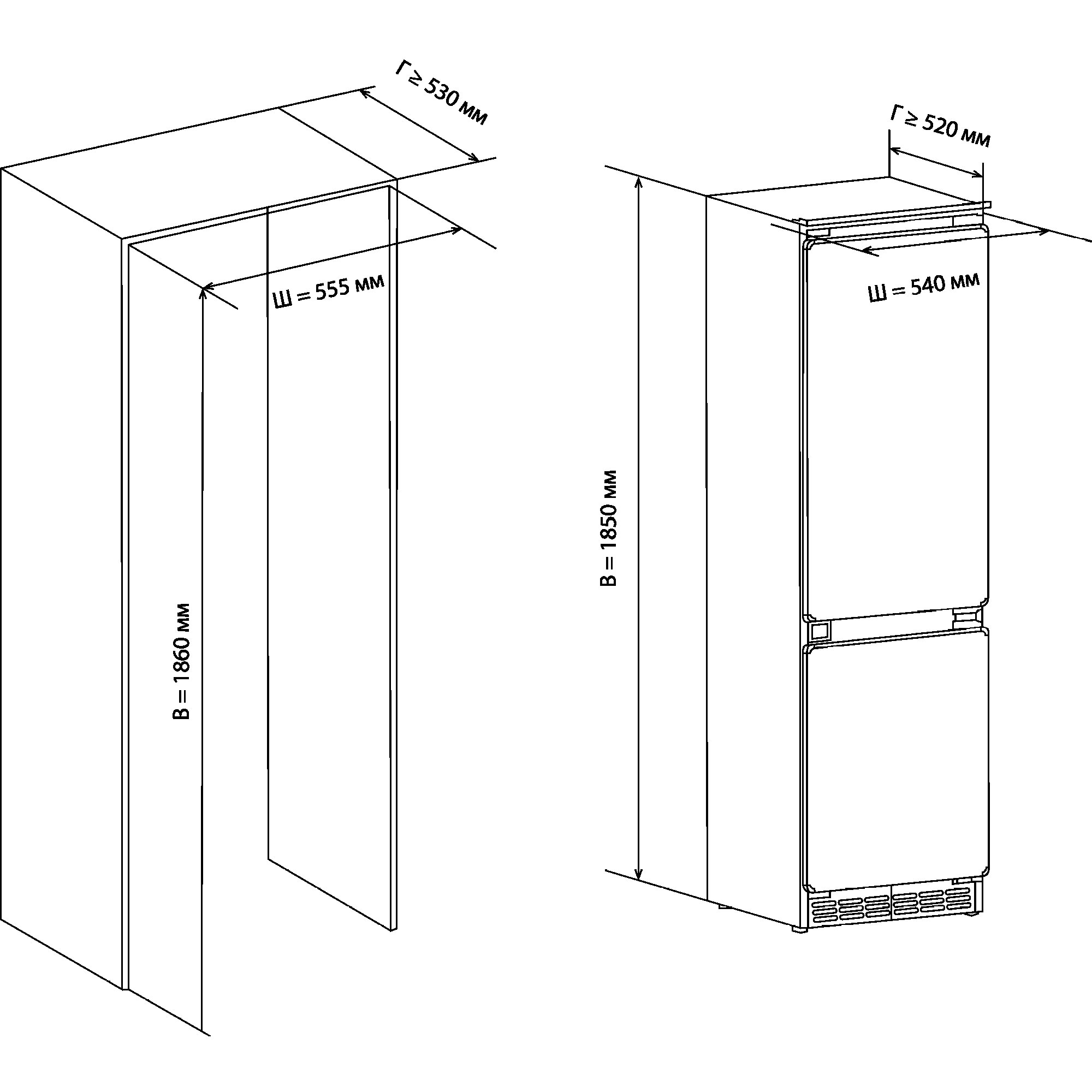 Описаниехолодильник-морозильник встраиваемый, 250 л, класс энергопотребления А+, No Frost, 54х52х185 см