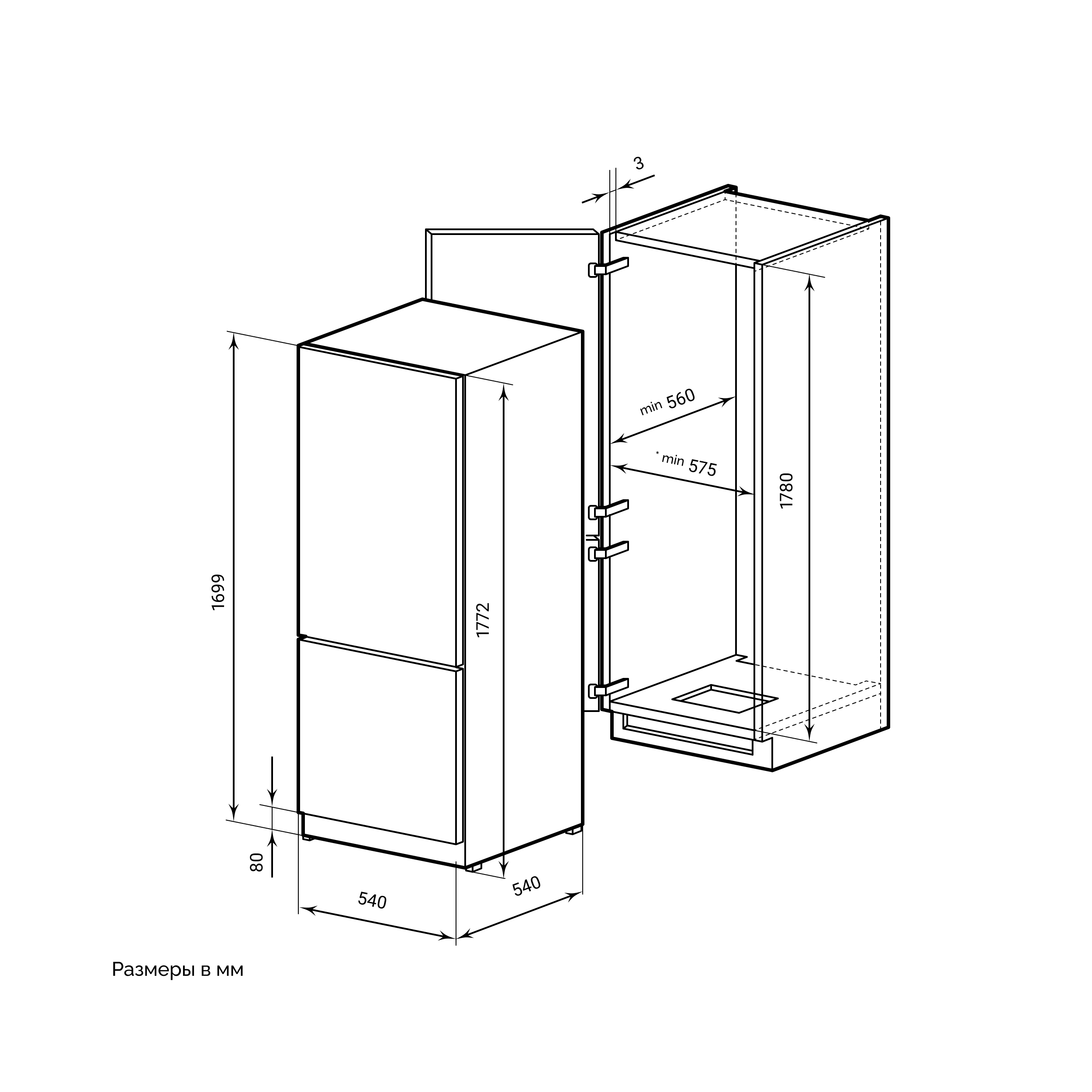 Возможность перевешивания двери есть Количество дверей 2 Количество камер 2 Мощность замораживания до 4 кг/cутки Общий объем 232 л Объем морозильной камеры 62 л Размер (Высота) 177,2 см Размер (Глубина) 54 см Размер (Ширина) 54 см Размораживание морозильной камеры No Frost Тип установки встраиваемый Класс энергопотребления класс A+ Ширина прибора 51 - 60 см Высота прибора 176 - 180 см Управление электронное Гарантийный срок (месяцы) 36,6 Страна производитель Китай Ссылка на сайт производителя https://lex1.ru/lex-lbi177.3d Максимальный уровень шума 41 дБ Тип холодильник с морозильником Внутреннее освещение есть Объем холодильной камеры 170 л Размораживание холодильной камеры No Frost Расположение морозильной камеры снизу Генератор льда нет Система крепления фасадов скользящие направляющие (door slider) Размер в упаковке (Высота) 178 см Размер в упаковке (Ширина) 57,5 см Размер в упаковке (Глубина) 56 см Вес прибора 61 кг Тип компрессора стандартный Полка для бутылок нет Количество контейнеров в морозильной камере 3 Размер (Ширина), см 54 Размер (Высота), см (Общие) 177,2 Размер (Глубина), см 54 - Отзывы