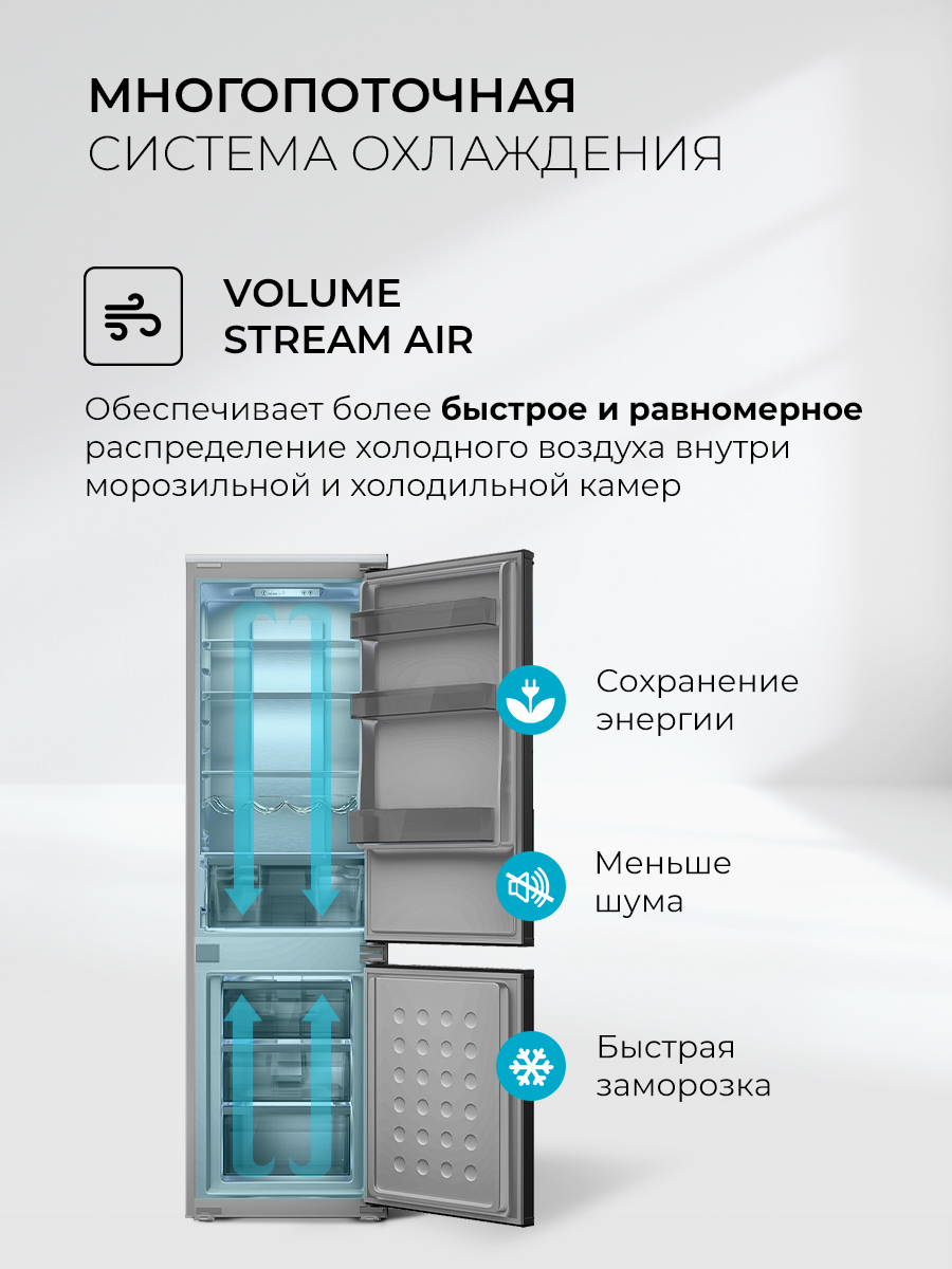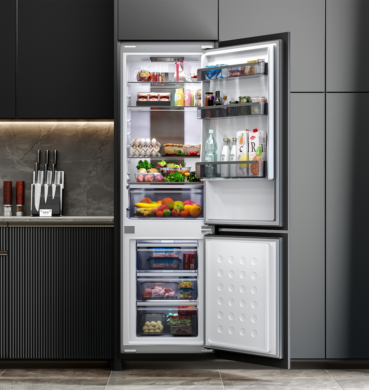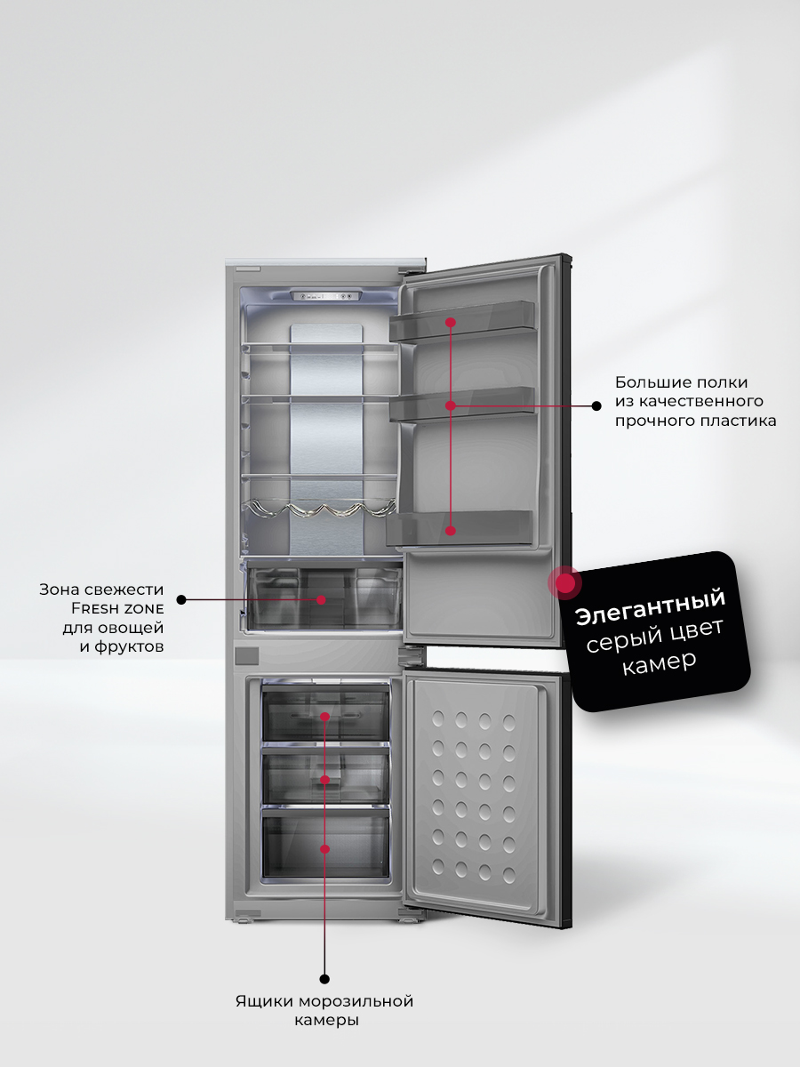 Описаниехолодильник-морозильник встраиваемый, 232 л, класс энергопотребления А+, No Frost, 54x54x177,2 см