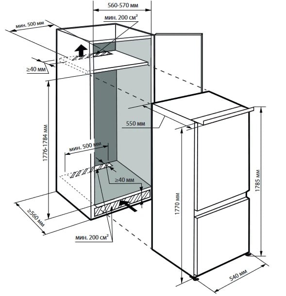 Описаниехолодильник-морозильник встраиваемый, 241 л, класс энергопотребления A+, No Frost, 54x54,5x178,5 см