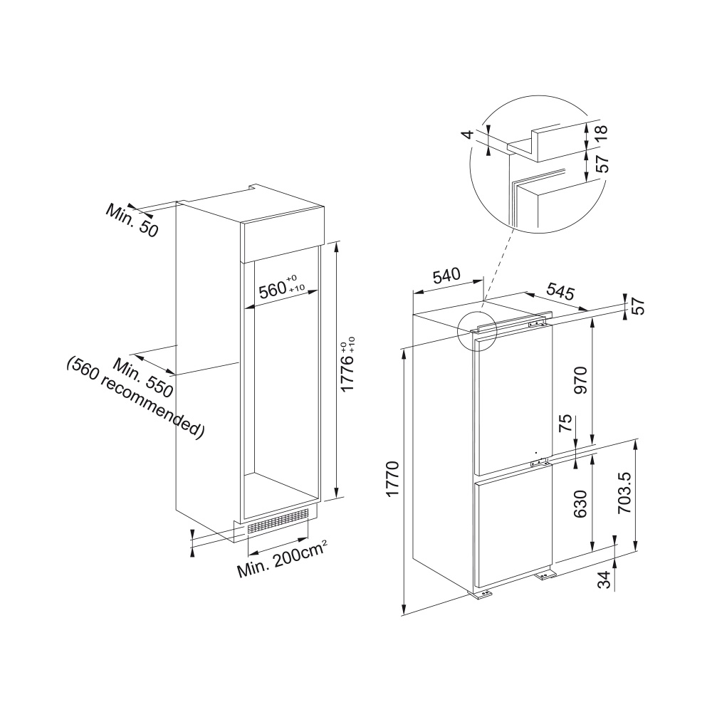 Описаниехолодильник двухкамерный встраиваемый, 268 л, класс энергопотребления D, ручная система размораживания, 54х54,5х177 см