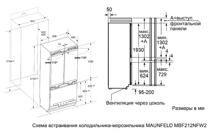 Maunfeld MBF212NFW2 Двухкамерный холодильник встраиваемый