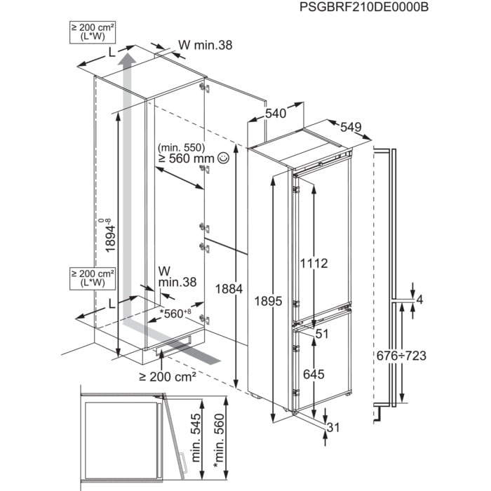 Описаниехолодильник-морозильник встраиваемый, 269 л, класс энергопотребления D, No Frost, 54x54,9x188,4 см