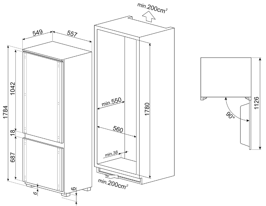 Описаниехолодильник-морозильник встраиваемый, 244 л, класс энергопотребления D, NoFrost, 55,7х54,9х176,9 см, белый