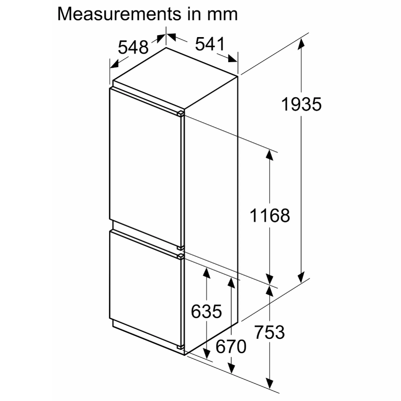 Описаниехолодильник-морозильник встраиваемый, 290 л, класс энергопотребления A+, No Frost, 54,1х54,8х193,5 см