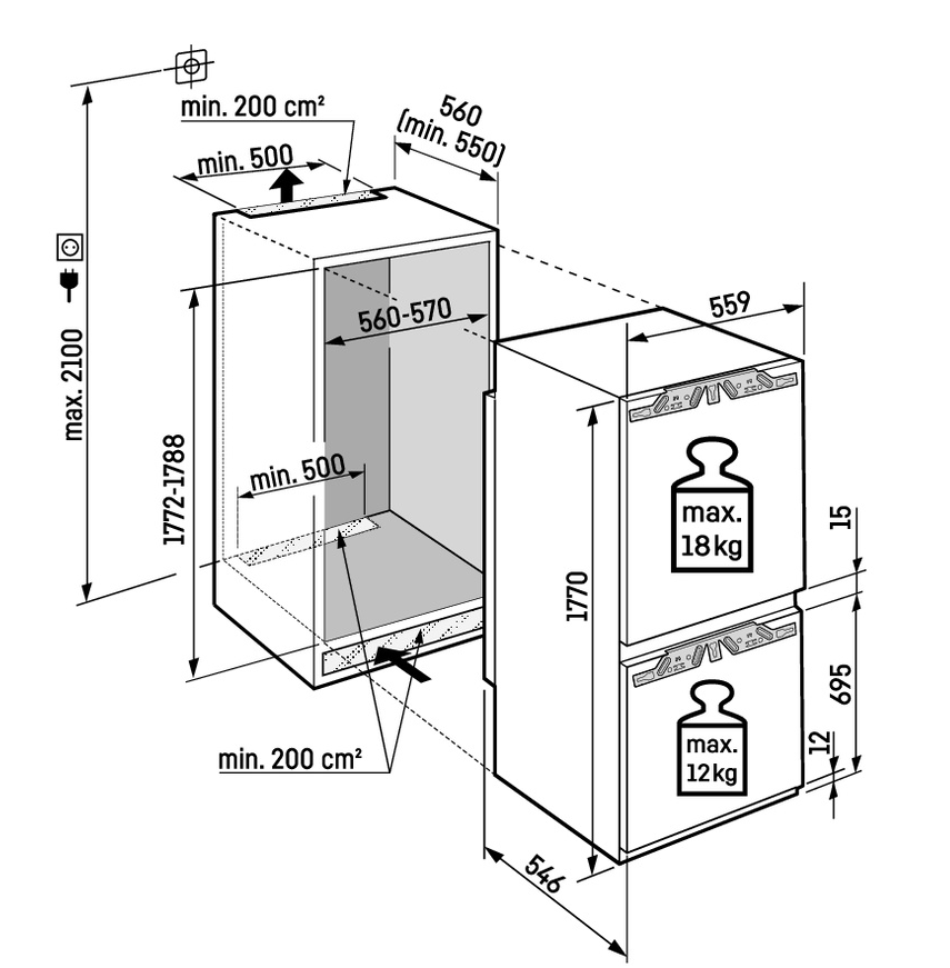 Описаниехолодильник-морозильник встраиваемый