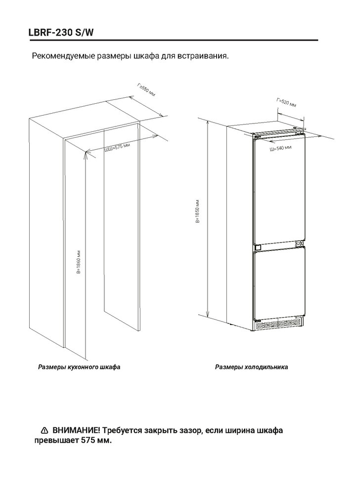 Ledum LBRF-230 S Двухкамерный холодильник встраиваемый
