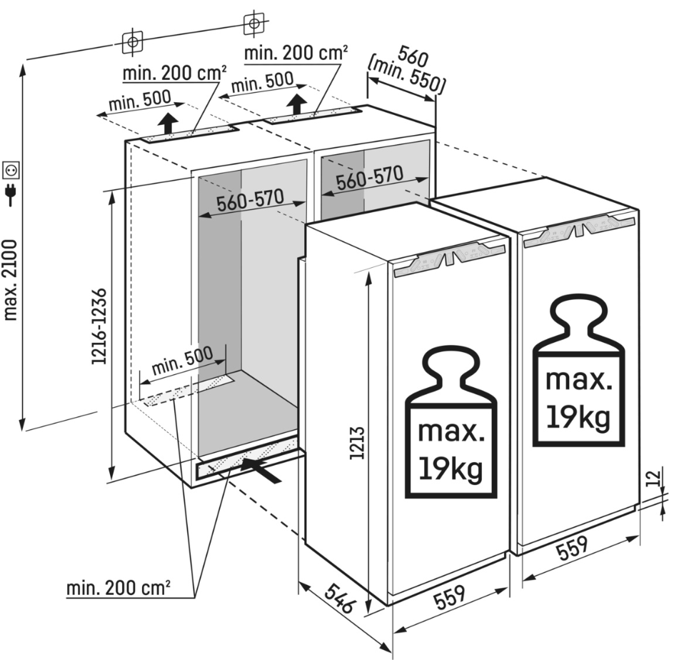 Возможность перевешивания двери есть Количество дверей 2 Количество камер 2 Общий объем 320 л Объем морозильной камеры 129 л Размер (Высота) 121,3 см Размер (Глубина) 54,6 см Размер (Ширина) 111,8 см Размораживание морозильной камеры No Frost Тип установки встраиваемый Класс энергопотребления класс A++ Высота прибора 121 - 125 см Управление сенсорное Гарантийный срок (месяцы) 60 Страна производитель Германия Тип холодильник с морозильником Зона свежести есть Объем холодильной камеры 191 л Размораживание холодильной камеры капельная система Размер (Ширина), см 111,8 Размер (Высота), см (Общие) 121,3 Размер (Глубина), см 54,6 - Отзывы
