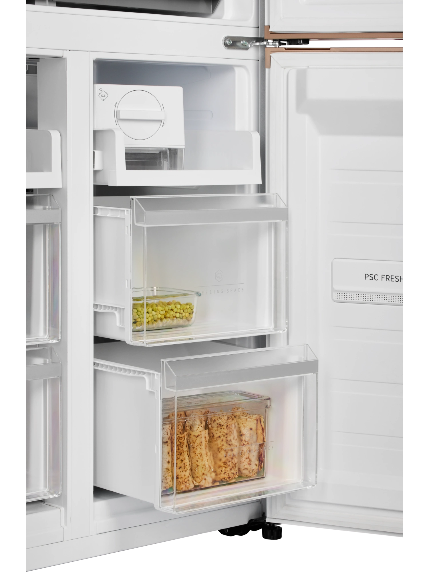 Описаниехолодильник-морозильник Side-by-Side отдельностоящий, 505 л, класс энергопотребления А++, No Frost, 83,3х59,8х190,5 см, белый мрамор