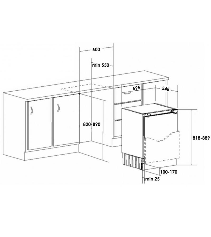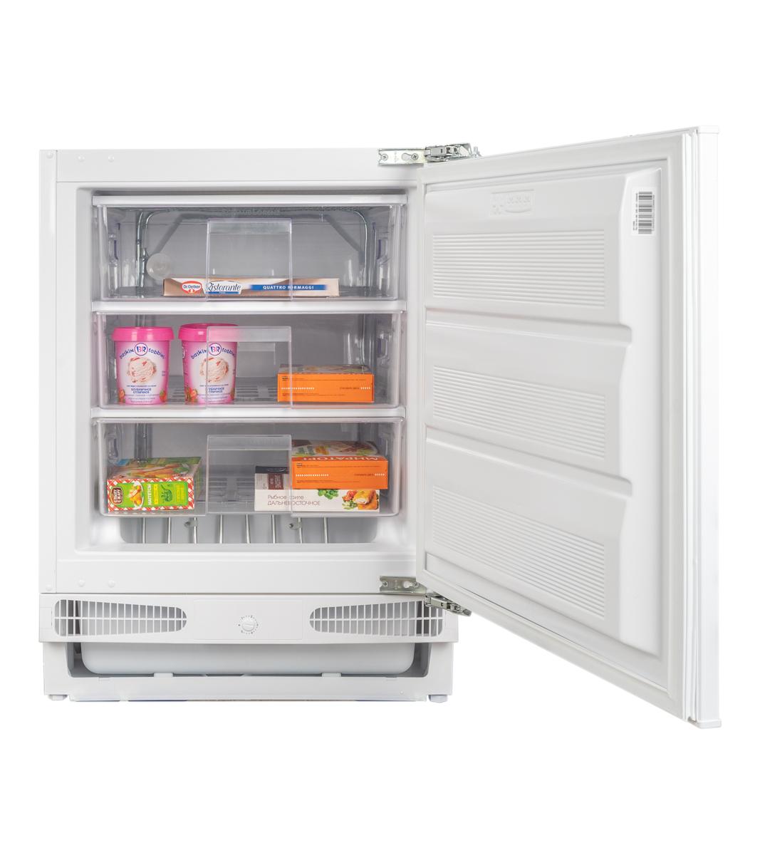 Описаниеморозильник встраиваемый под столешницу, 93 л, класс энергопотребления А+, ручная система размораживания, 59,5х54,8х81,8 см, белый