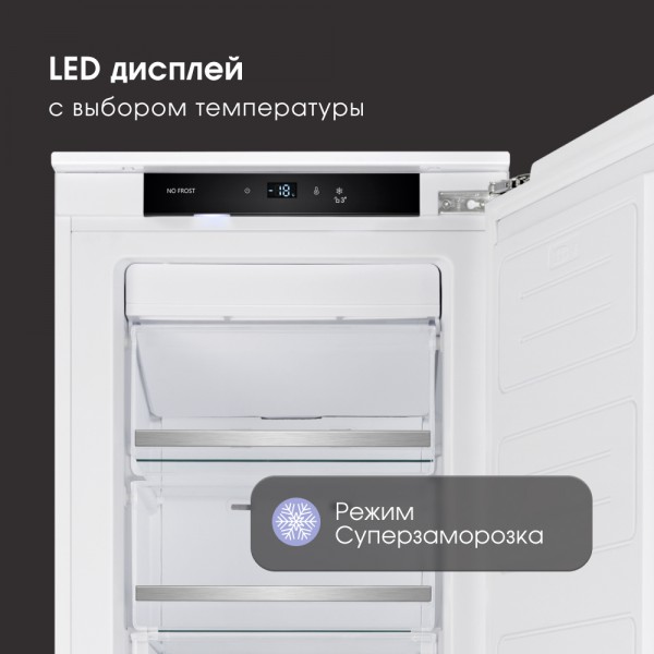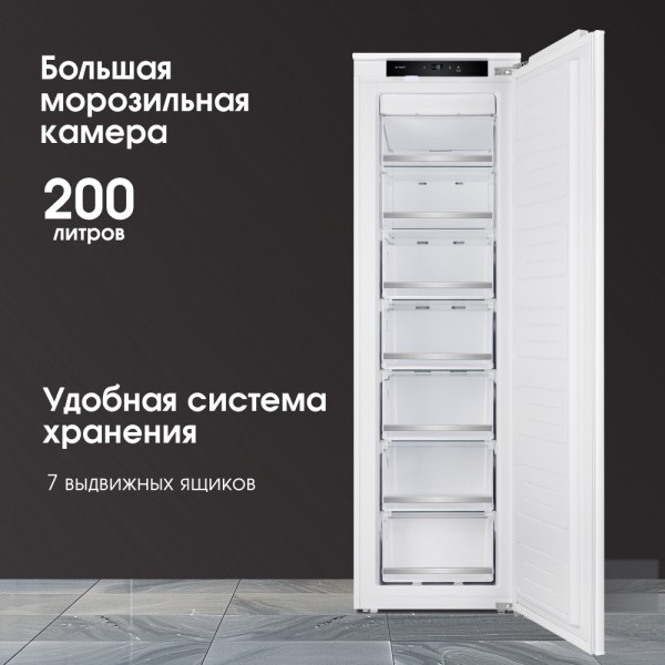 Описаниеморозильник встраиваемый, 200 л, класс энергопотребления А+, No Frost, 54х55х176,9 см