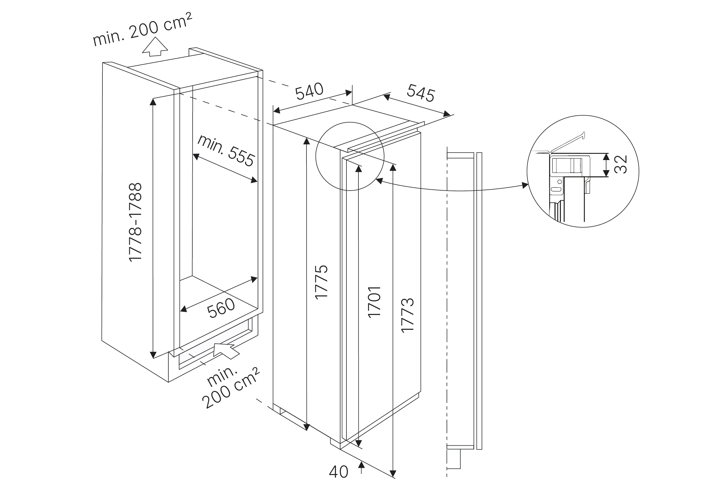 Возможность перевешивания двери есть Количество дверей 1 Количество камер 1 Мощность замораживания до 10 кг/cутки Общий объем 204 л Объем морозильной камеры 204 л Размер (Высота) 177,5 см Размер (Глубина) 54,5 см Размер (Ширина) 54 см Размораживание морозильной камеры No Frost Тип установки встраиваемый Ширина прибора 51 - 60 см Высота прибора 176 - 180 см Управление электронное Гарантийный срок (месяцы) 36 Страна производитель Германия Ссылка на сайт производителя https://clck.ru/3GZrfe Уровень шума, дБ 39 Система крепления фасадов жёсткое (door-on-door) Размер в упаковке (Высота) 187 см Размер в упаковке (Ширина) 57 см Размер в упаковке (Глубина) 61 см Вес прибора 61,2 кг Количество контейнеров в морозильной камере 6 Размер (Ширина), см 54 Размер (Высота), см (Общие) 177,5 Размер (Глубина), см 54,5 - Отзывы
