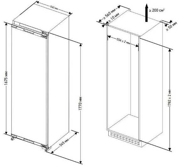 Описаниеморозильник встраиваемый, 230 л, класс энергопотребления А+, No Frost, 54х54,5х177 см