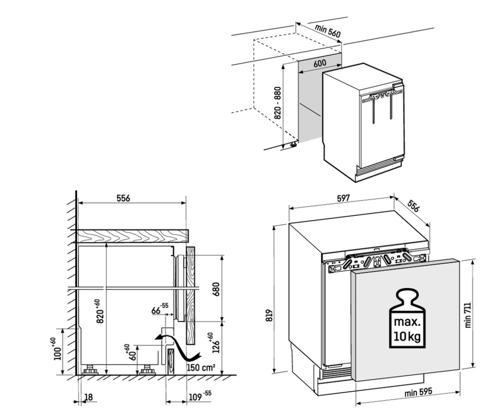 Описаниеморозильник встраиваемый, 70 л, класс энергопотребления A++, No Frost, 59,7х55,6х81,9 см