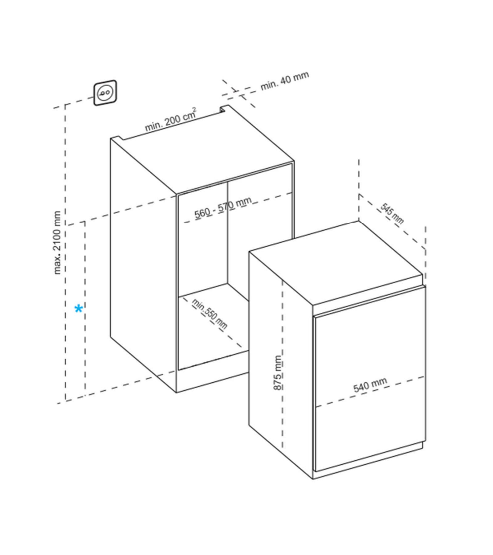 Описаниехолодильник однокамерный встраиваемый, 123 л, класс энергопотребления A++, капельная система размораживания, 54х54,5х87,5 см