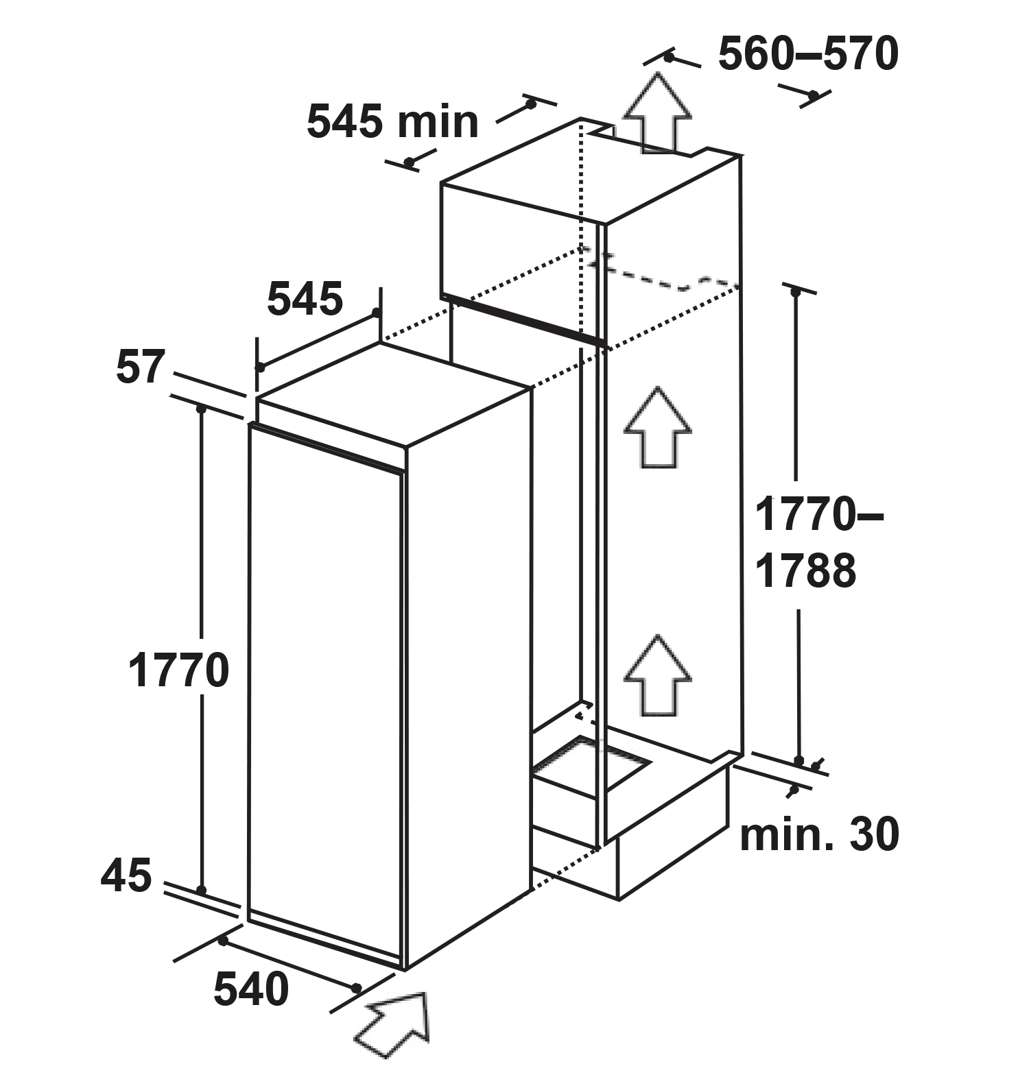 Описаниехолодильник однокамерный встраиваемый, 280 л, класс энергопотребления А+, No Frost, 54х55х176,9 см
