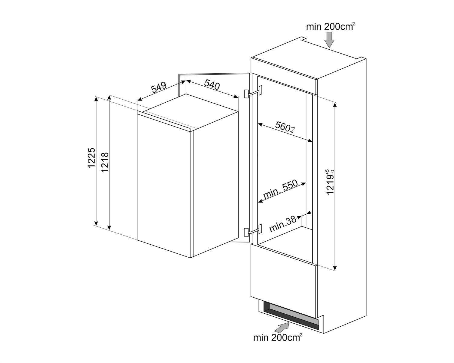 Smeg S4C122E Однокамерный холодильник встраиваемый