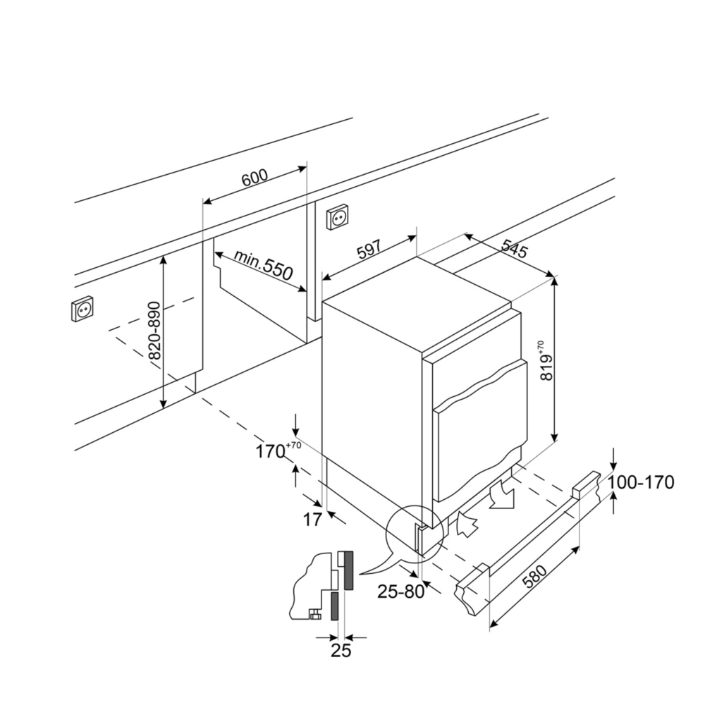 Описаниехолодильник однокамерный встраиваемый под столешницу, 134 л, класс энергопотребления E, капельная система размораживания, 59,6x54,7x81,9 см