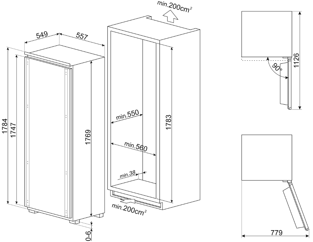 Smeg S9L174D1D Однокамерный холодильник встраиваемый