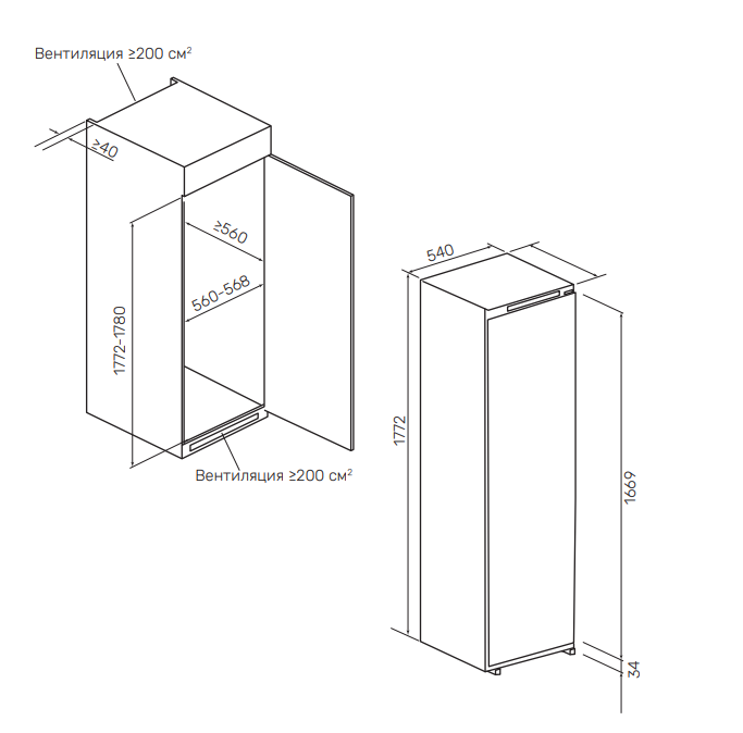 Возможность перевешивания двери есть Количество дверей 1 Количество камер 1 Общий объем 289 л Объем морозильной камеры нет Размер (Высота) 177,2 см Размер (Глубина) 54 см Размер (Ширина) 54 см Размораживание морозильной камеры No Frost Тип установки встраиваемый Класс энергопотребления класс A+ Ширина прибора 51 - 60 см Высота прибора 171 - 175 см Управление электронное Гарантийный срок (месяцы) 24 Страна производитель Китай Ссылка на сайт производителя https://kuppersberg.ru/products/srb_1781/ Максимальный уровень шума 35 дБ Тип холодильник без морозильника Внутреннее освещение есть Объем холодильной камеры 289 л Размораживание холодильной камеры No Frost Расположение морозильной камеры нет Система крепления фасадов скользящие направляющие (door slider) Размер в упаковке (Высота) 187,8 см Размер в упаковке (Ширина) 58,5 см Размер в упаковке (Глубина) 58,5 см Вес прибора 55 кг Тип компрессора инверторный Полка для бутылок нет Размер (Ширина), см 54 Размер (Высота), см (Общие) 177,2 Размер (Глубина), см 54 - Отзывы