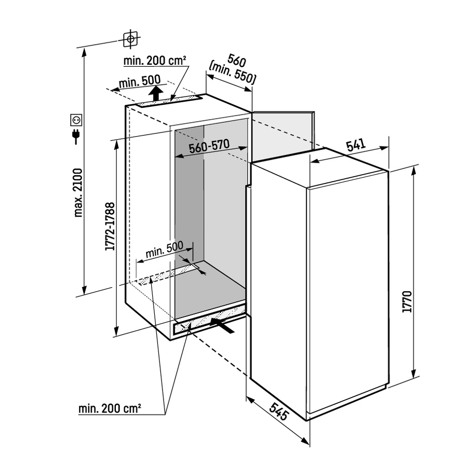 Описаниехолодильник однокамерный встраиваемый, 307 л, класс энергопотребления A++, капельная система размораживания, 55,9х54,6х177 см
