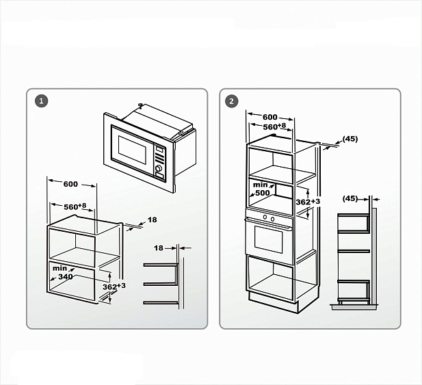 Описаниемикроволновая печь встраиваемая, 20 л, 59,4x34,4х38,2 см, белый
