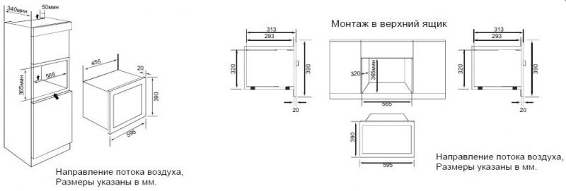 Описаниемикроволновая печь встраиваемая, 20 л, 59,5х34х37,6 см, черный