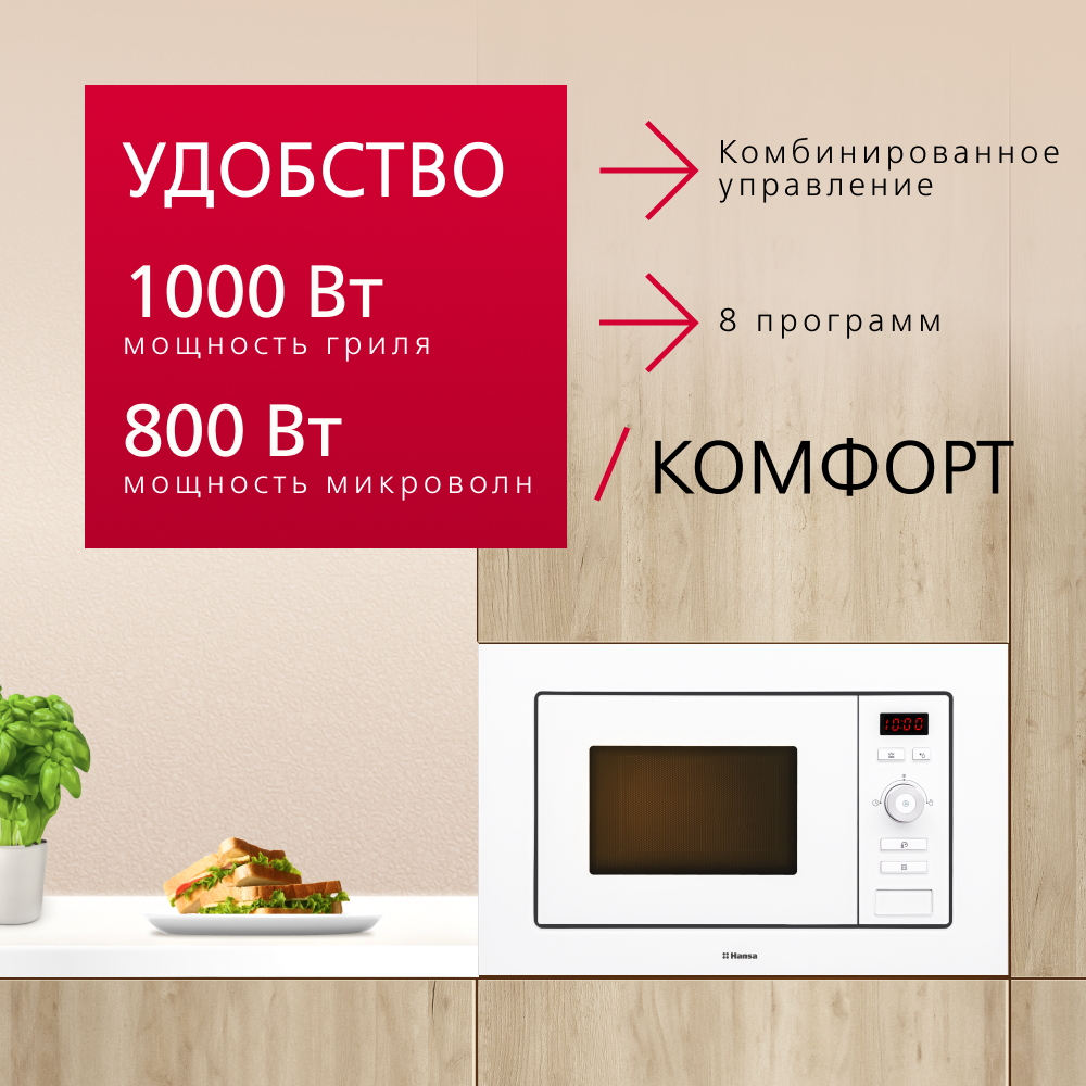 Размер (Высота) 38,8 см Размер (Глубина) 36,5 см Размер (Ширина) 59,5 см Тип установки встраиваемый Цвет белый Ширина прибора 60 см Высота прибора 38 см Дисплей есть Конвекция нет Переключатели поворотные + кнопки Управление электронное Гарантийный срок (месяцы) 12 Страна производитель Китай Ссылка на сайт производителя https://hansa.ru/product/vstraivaemaya-mikrovolnovaya-pech-hansa-amm20bewh-belyy Звуковой сигнал есть Количество программ 8 Внутреннее покрытие камеры нержавеющая сталь Внутренний объем 20 л Гриль есть Дверца навесная, петли слева Мощность микроволн 800 Вт Открывание дверцы кнопка Поворотный стол нет Размер в упаковке (Высота) 44,9 см Размер в упаковке (Ширина) 65 см Размер в упаковке (Глубина) 40,4 см Вес прибора 15 кг Размер (Ширина), см 59,5 Размер (Высота), см (Общие) 38,8 Размер (Глубина), см 36,5 - Отзывы