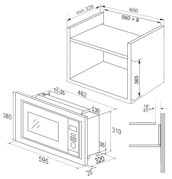 Описаниемикроволновая печь встраиваемая, 20 л, 59,5x36,5х38,3 см, нержавеющая сталь